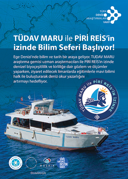 TÜDAV MARU ile PİRİ REİS’in izinde yeni projemiz, Turquoise Coast Environment Fund – Turkey hibe programı tarafından desteklendi! Ege Denizi’nde büyük Türk denizci ve coğrafyacı Pîrî Reis’in haritasını takip ederek, her geçen gün artan insan baskısı altında değişen denizlerimizin mevcut durumu hakkında güncel veriler toplayacağız.