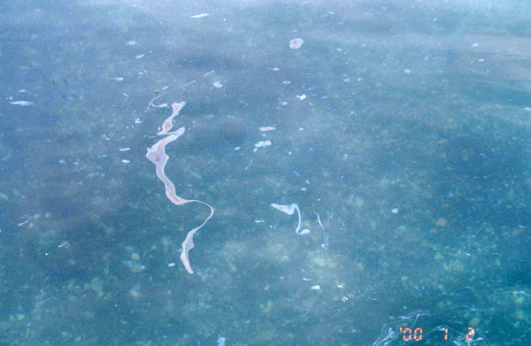 Sedimentte balık iskelet atığı (100-1000 µm), köpek balığı dişi (2000-10000 µm), biyolojik bileşikler (1-10 µm), siliko flagellatlar (10-100 µm), diatomda (10-2000 µm), hava tozları (1-100 µm), plaj kumu (100-2000 µm) bulunur.