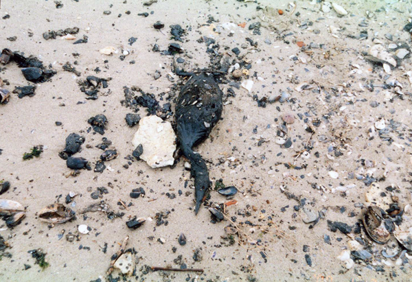 Petrol kirliliği sonucunda ölen bir deniz kuşu