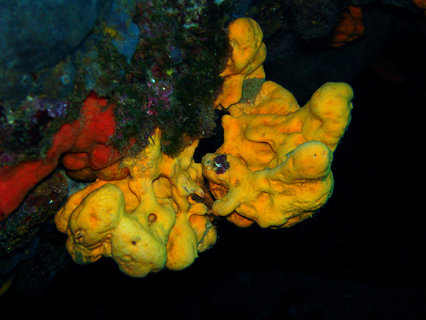 Fotoğraf: Ege ve Akdeniz kıyılarımızda yaygın olarak bulunan Sarı Sünger (Agelas oroides) bir çok biyoaktif madde içerren oldukça önemli bir türdür.