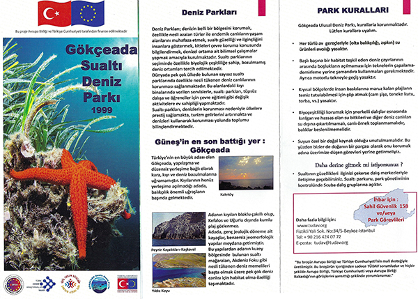 With the hard work and efforts of TUDAV, the Marine Park of Gökçeada was established in 1999 because of the aesthetic and ecological value of the area characterized by large Posidonia meadows and hard bottoms comprised of macroalgal communities and coralligenous habitats. The park receives approximately 7000 tourists/year using the bay for sunbathing, swimming and recreational fisheries during high season (June to September). Please click for more details.